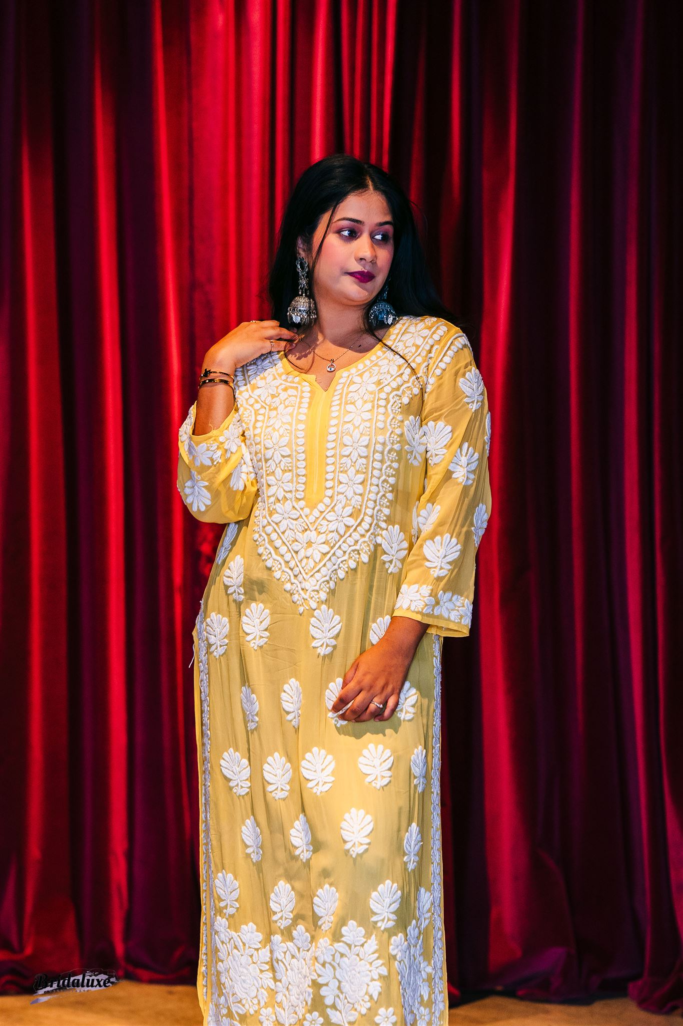 Yellow Chikankari kurta top (Size 44) beautifully hand-embroidered on soft viscose fabric. Light, breathable, and perfect for a summery elegant look